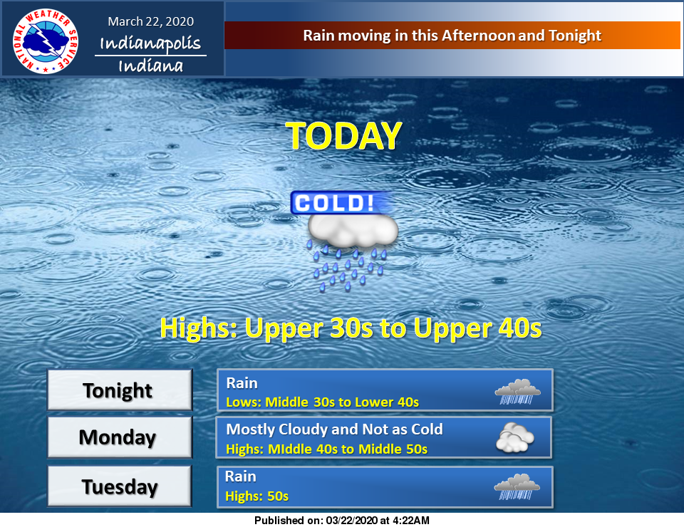 Day Planner >> Chilly start to the day… Clouds increase this AM and showers arrive this afternoon. Some wet snowflakes will mix in with rain for northern parts of the area. #INwx @FOX59 @theWXauthority #FOX59morning pic.twitter.com/DppWMkoqza