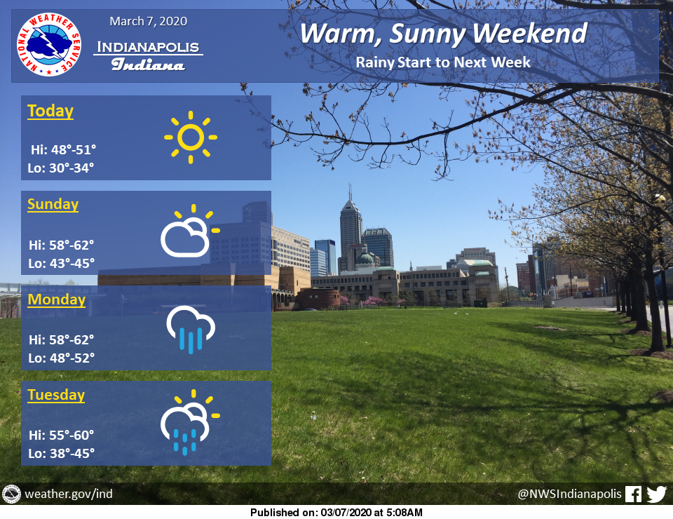 Talking warmer temps and how daylight saving time beginning will impact or sunrise and sunset in the forecast. #inwx #13sunrise @WTHRcom | https://t.co/D5oqy9I5co pic.twitter.com/eAVjXcLHU2