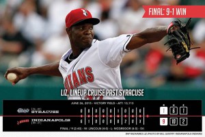 Starter Radhames Liz retired 12 of 14 batters, Brent Morel homered for the fourth time in seven games and the Indianapolis Indians (44-31) defeated the Syracuse Chiefs (26-49) 9-1 on Friday night at Victory Field. Indianapolis scored six of its nine runs in the opening frame before Morel went deep with a solo homer in […]
